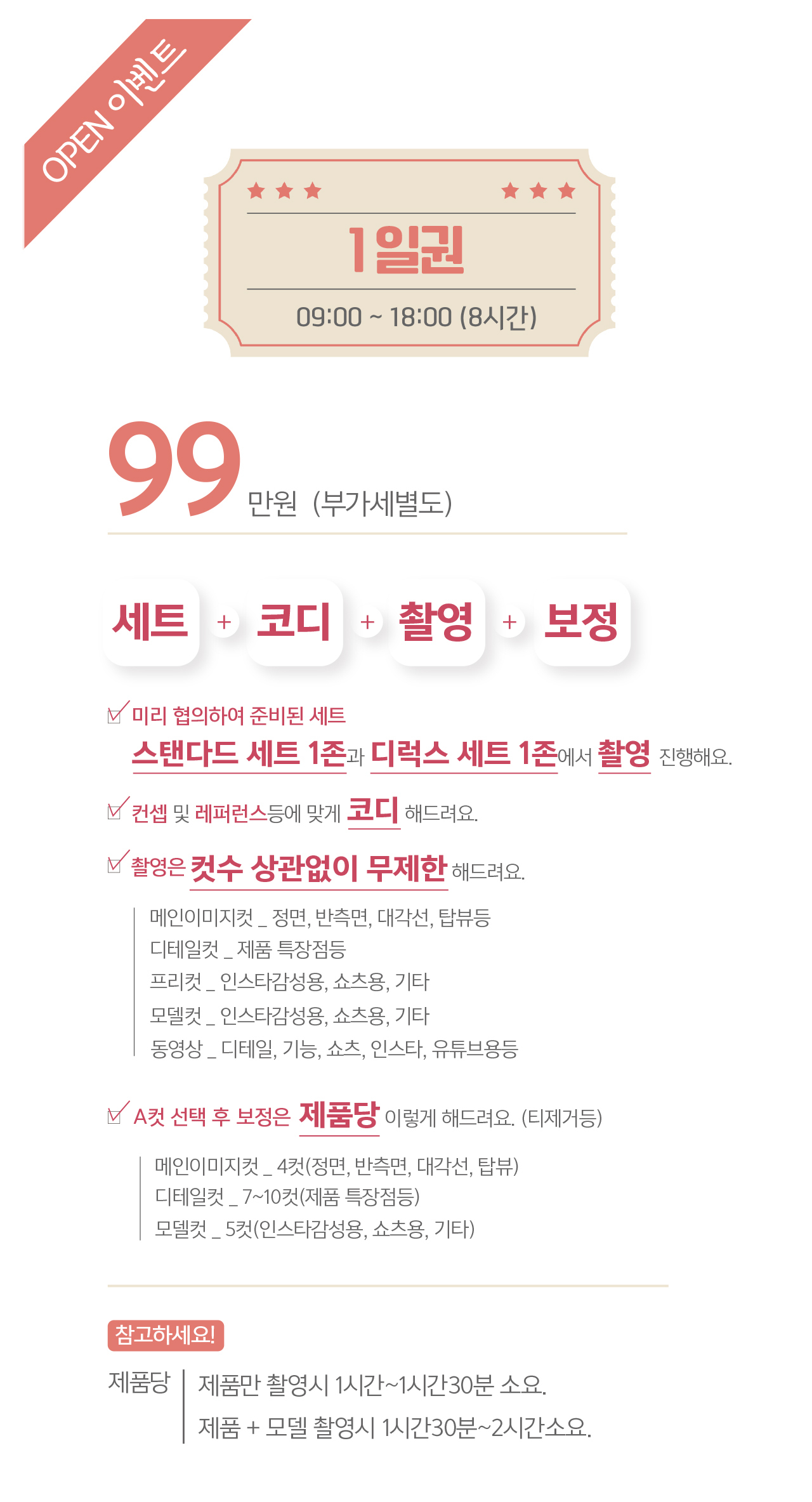 (제품당 : 메인이미지 4컷, 디테일컷 5컷, 모델컷 5컷정도...)